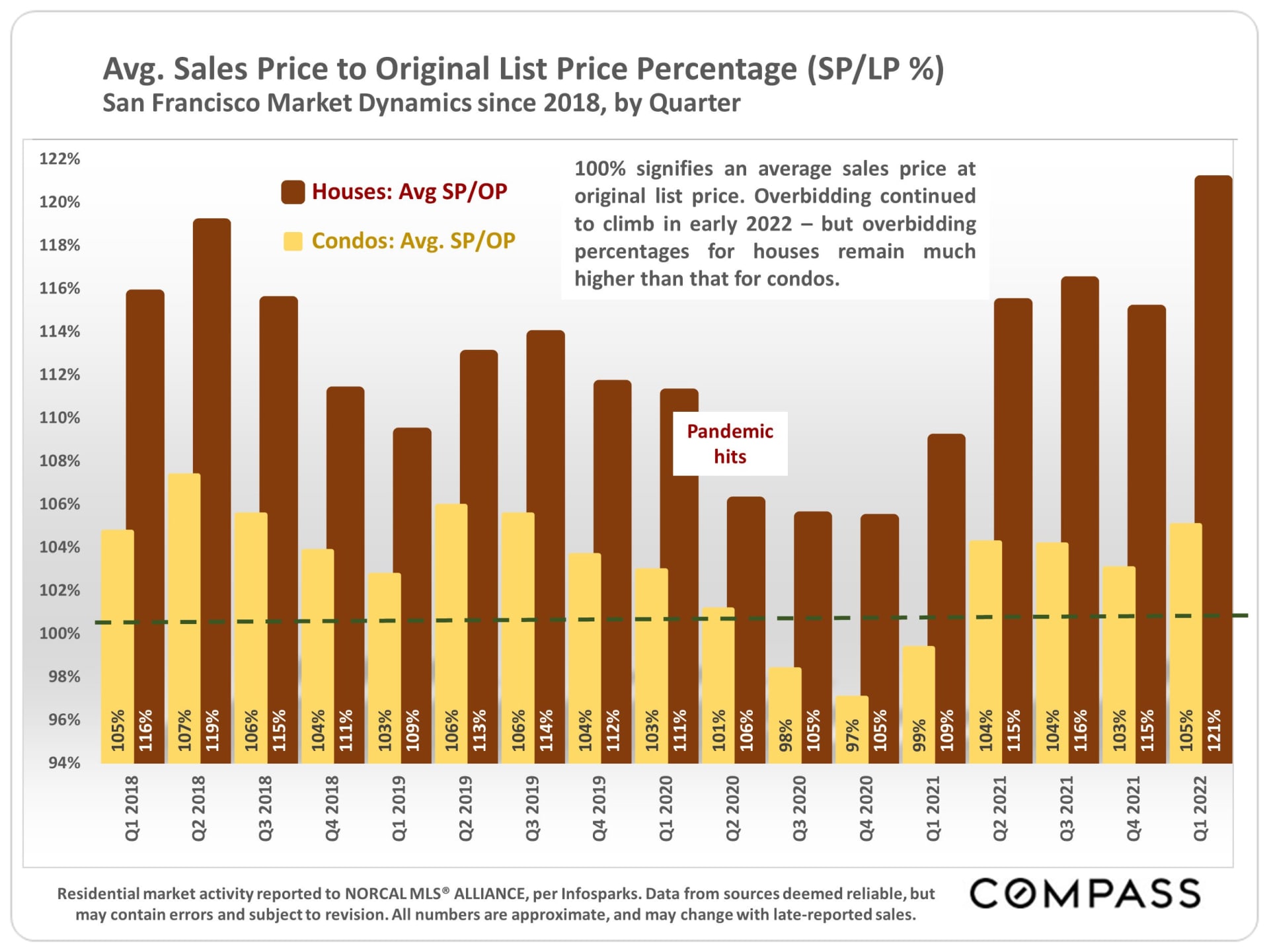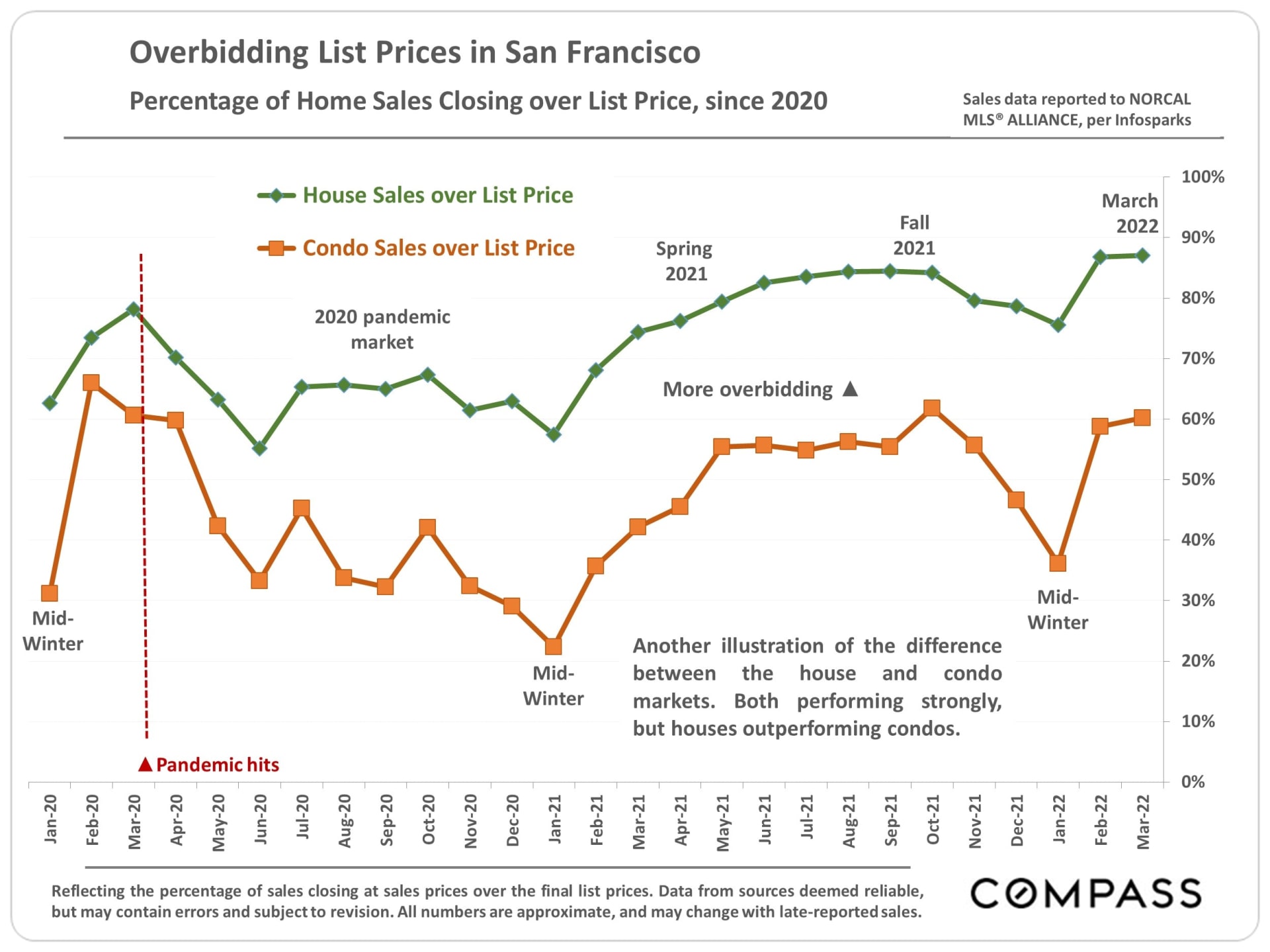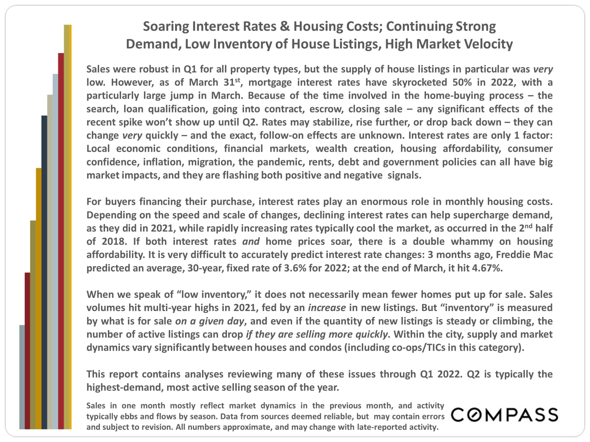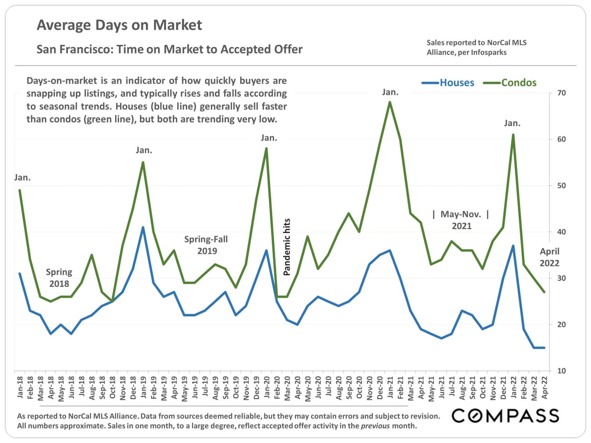 It is impossible to know how median and average value statistics apply to any particular home without a specific comparative market analysis. These analyses were made in good faith with data from sources deemed reliable, but may contain errors and are subject to revision. It is not our intent to convince you of a particular position but to attempt to provide straightforward data and analysis, so you can make your own informed decisions. Median and average statistics are enormous generalities: There are hundreds of different markets in San Francisco and the Bay Area, each with its own unique dynamics. Median prices and average dollar per square foot values can be and often are affected by other factors besides changes in fair market value. Longer-term trends are much more meaningful than short-term. Compass is a real estate broker licensed by the State of California, DRE 01527235. Equal Housing Opportunity. This report has been prepared solely for information purposes. The information herein is based on or derived from information generally available to the public and/or from sources believed to be reliable. No representation or warranty can be given with respect to the accuracy or completeness of the information. Compass disclaims any and all liability relating to this report, including without limitation any express or implied representations or warranties for statements contained in, and omissions from, the report. Nothing contained herein is intended to be or should be read as any regulatory, legal, tax, accounting or other advice and Compass does not provide such advice. All opinions are subject to change without notice. Compass makes no representation regarding the accuracy of any statements regarding any references to the laws, statutes, or regulations of any state are those of the author(s). Past performance is no guarantee of future results.