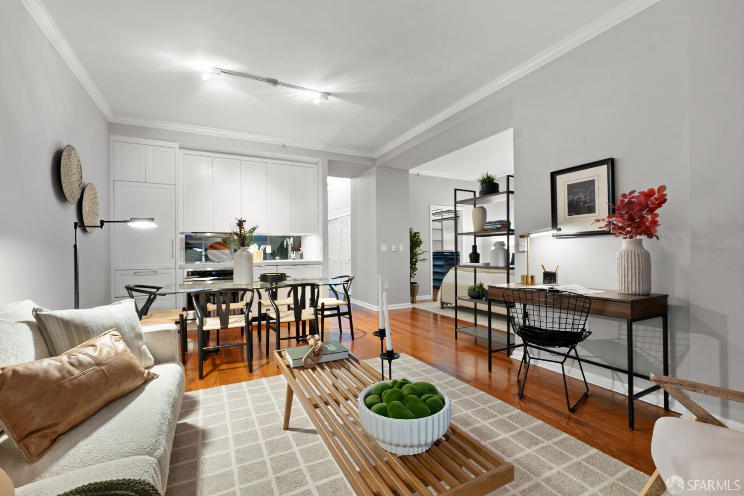 Luxury high-rise condo 140 SVN #1102 just dropped the price of $499,000. This move-in ready junior one-bedroom, one-bathroom penthouse offers modern comfort and a prime central location. The open-concept layout features hardwood floors, roller shades, and a spacious sleeping area that fits a queen or king bed, complemented by a custom walk-in closet separate from the living area. The upgraded kitchen includes sleek touchscreen appliances with a new stove and cooktop. Additional highlights include a large storage space and optional leased parking within the building for $250-$300 per month. Residents enjoy premium amenities such as a fitness center, exercise studio, conference room, landscaped courtyard with a fountain, and business meeting room. Perfectly situated in the heart of the city, this home offers unmatched walkabilityjust steps to Hayes Valley, Mission Dolores, SoMa, and Nob Hillputting the best of San Francisco's dining, shopping, and entertainment all within easy reach, along with tech shuttle stops right out front for effortless commuting.